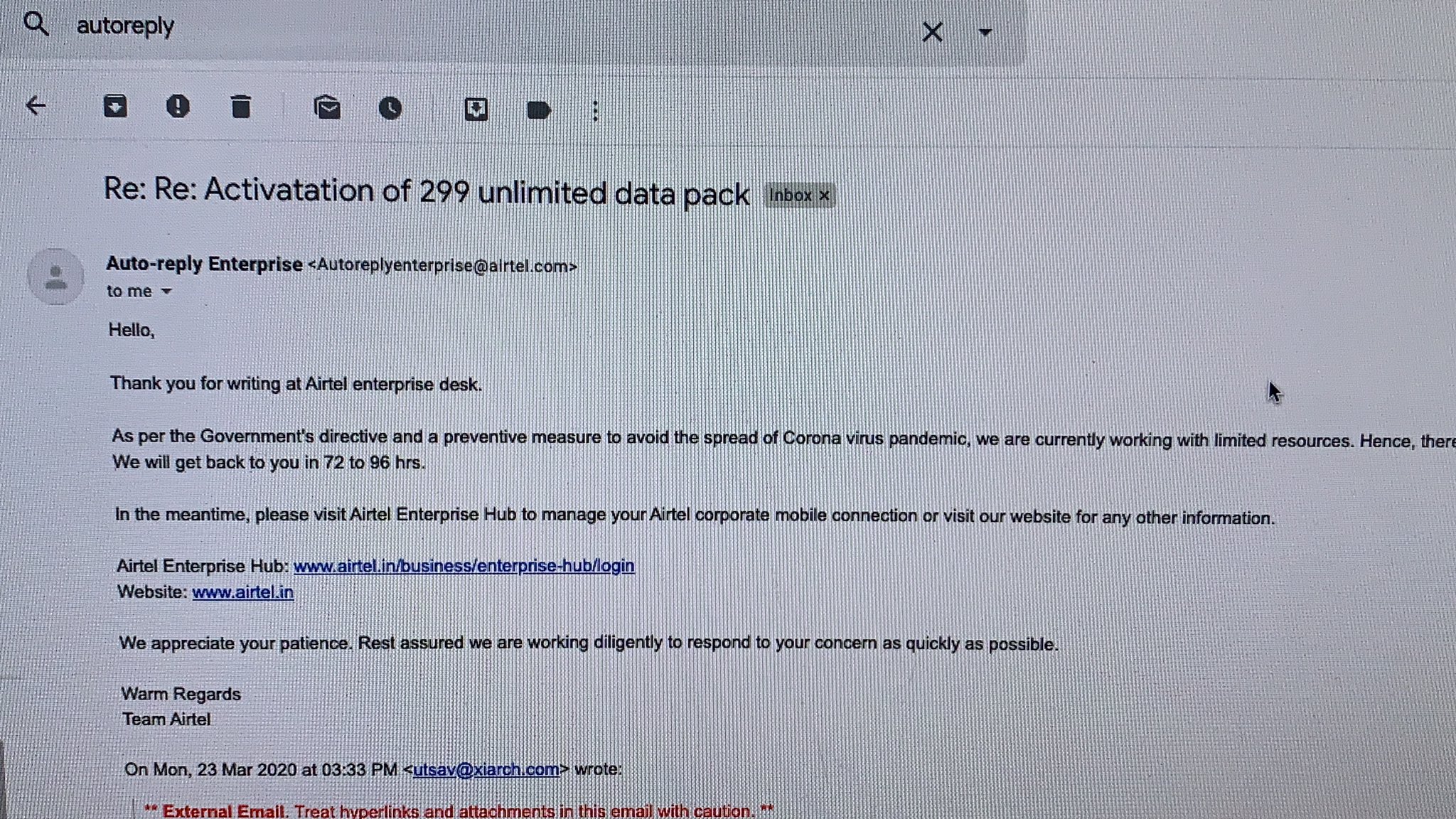 Utsav Mittal On Twitter Airtel Presence No Reply Received For Corporate Dsl Bill Plan Change Even After 150 Hours 6 Days Internet Is Important For Work For Home During Covid 19 Https T Co 4g3cihotev Twitter